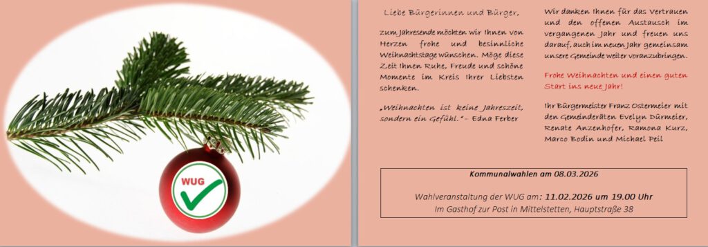 Die letzten 6 Jahre haben gezeigt, das die WUG die richtige Wahl für Mittelstetten war.